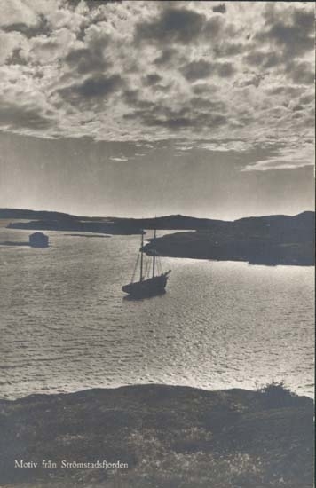 Tryckt text på kortet: "Motiv från Strömstadsfjorden."