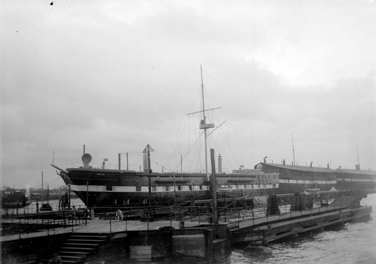 Enligt text som medföljde bilden: "Köpenhamn. Vid Örlogshamnen 2/9 08."