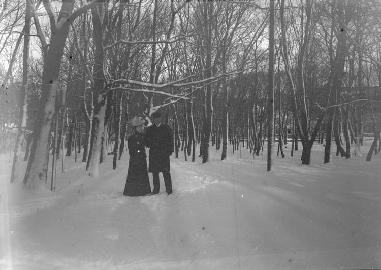 Enligt text som medföljde bilden: "Hjalmar och fröken Sjöstam i parken 7/1 1900."
