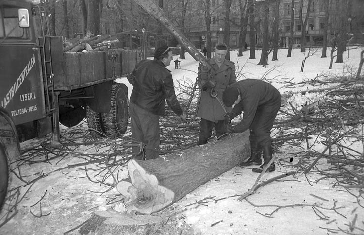 Enligt fotografens notering: "Trädfällning i i Lysekils park".