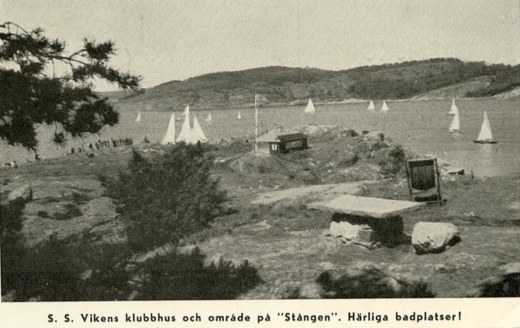 Enligt Bengt Lundins noteringar: "S.S. Vikens klubbhus och område på "Stången". Härlig Badplats".