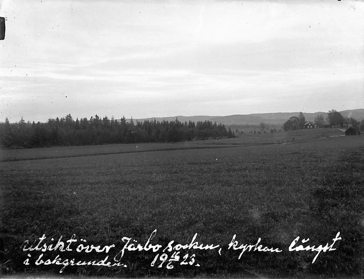 "Utsikt över Järbo socken, kyrkan längst i bakgrunden. 16/6 1923" enligt text på fotografiet