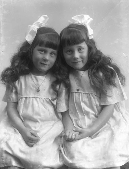 Enligt fotografens noteringar: "Landfiskals Nelssons döttrar. Kvistrum omkring år 1919? Oretucherade."