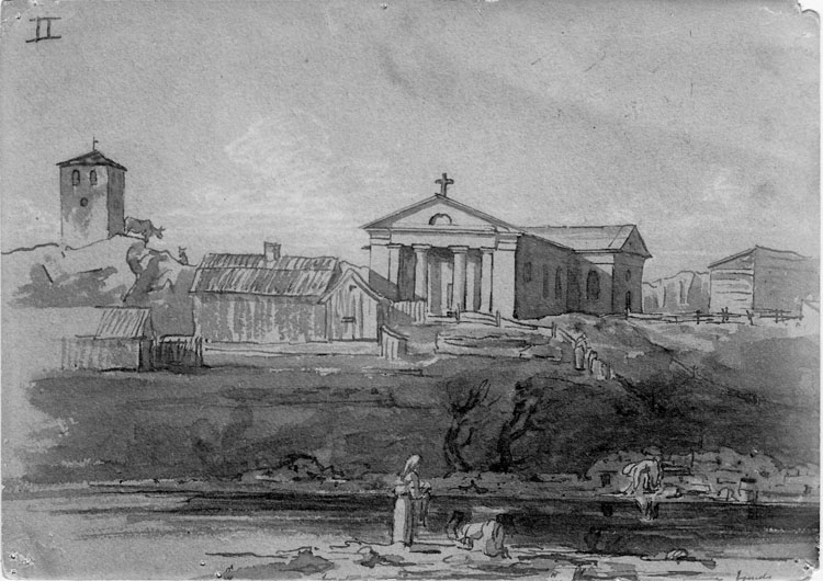 En laverad teckning 1813 - 14 ritad av engelske resanden & artisten J. F. James.