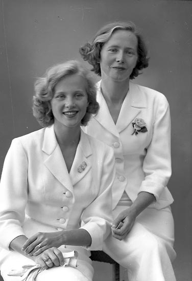Enligt fotografens journal nr 8 1951-1957: "Pettersson Fru Ingrid med dotter, Box 638 Heby".