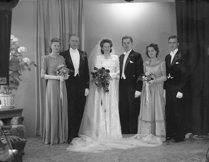 Enligt fotografens journal nr 7 1944-1950: "Svensson, Brudp. Henning Dafinseröd Ucklum".