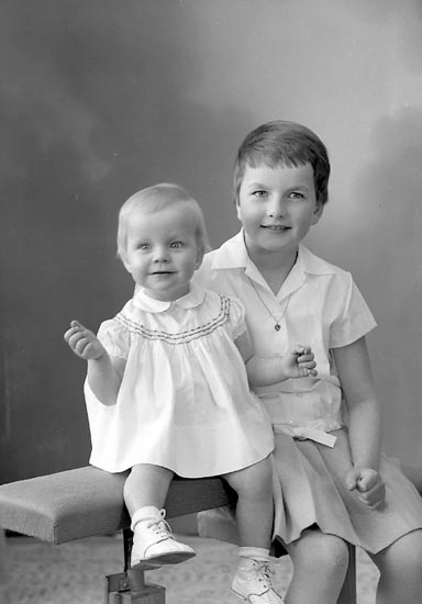 Enligt fotografens journal nr 9 1958: "Skog, Anne-Katrin o Agneta Box 388 Här".