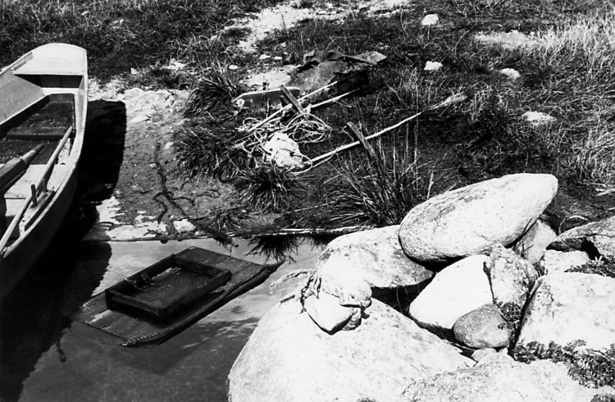 Skrivet på baksidan: "Blekinge, Sölvesborg st.f., Falkvik. Vakare och sump för spättgarn och spättor, skäddor och skrubbor."