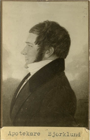Text på kortets baksida: "Apotekaren Björklund. "Le Mornie pinxit 1842". Död 1895".