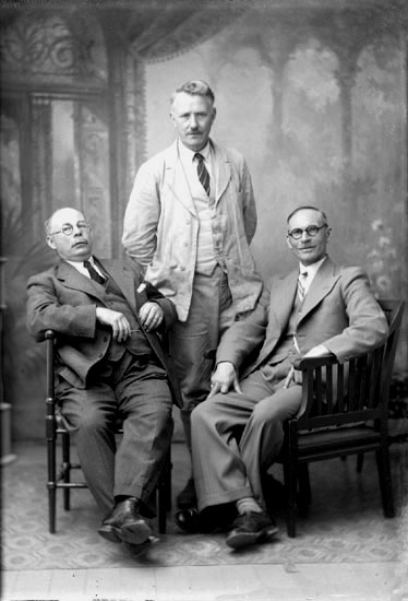 Enligt senare noteringar: "Oscar Färdig tillsammans med två gamla kamrater, som kommit på besök. Sonen Rune, senare verksam i rörelsen, tog bilden." (BJ)