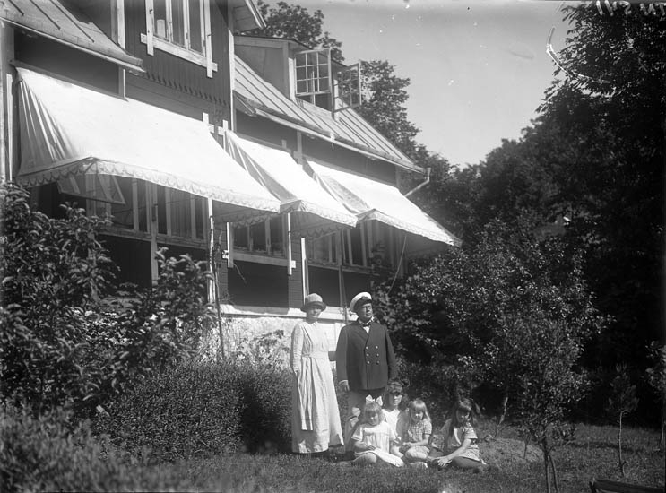 Enligt tidigare noteringar: "Familjegrupp framför villa. Korngatan 5 eller 3 Höjentorp Uddevalla. Sommarvilla."