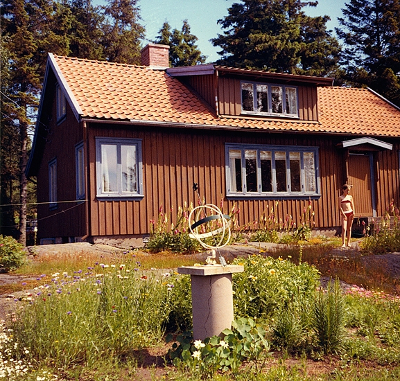 Sommaren 1964. Veronika i den första bikinin med vit brodyr (som var en födelsedagspresent 196363) mellan digitalis.