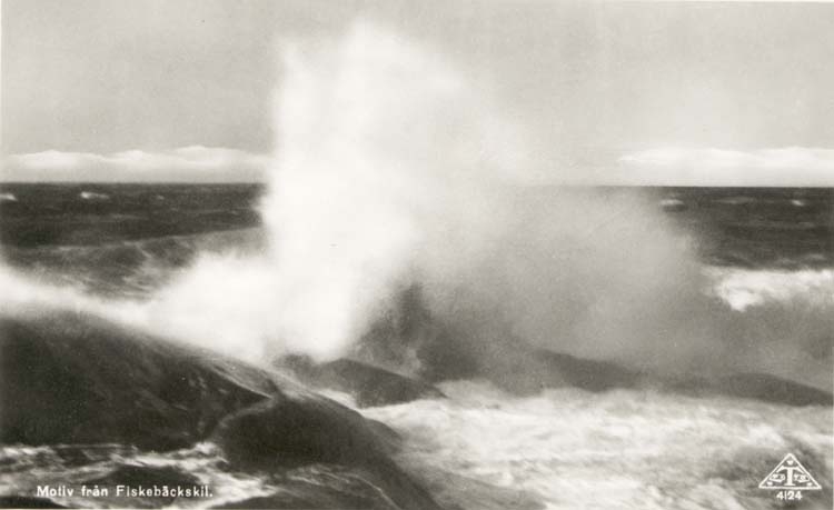 Tryckt text på kortet: "Motiv från Fiskebäckskil."