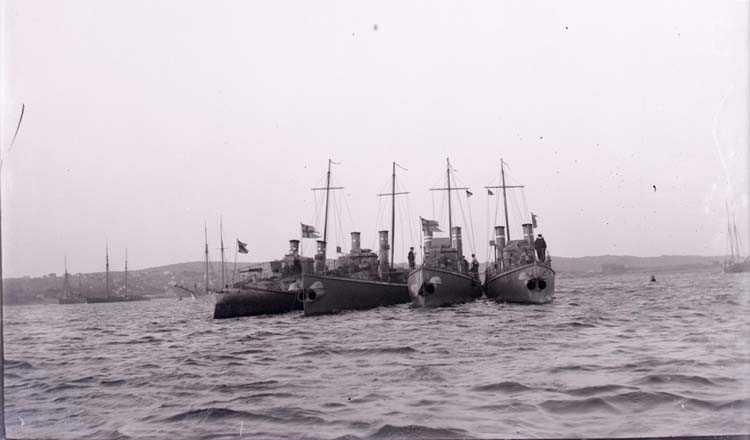 Enligt text som medföljde bilden: "Torpedbåtarna N.1, 2, 3, 4 Aug 07."