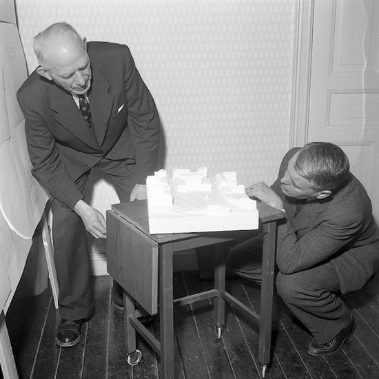 Enligt notering: "Arkitekttävlingen Rådhuset U-a 10/4 1957".