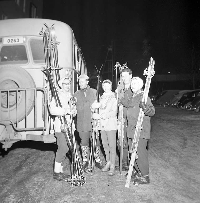 Enligt notering: "Skidutflykt med buss från arbetsförmedlingen TARSAN med flera 18/1 1961".
