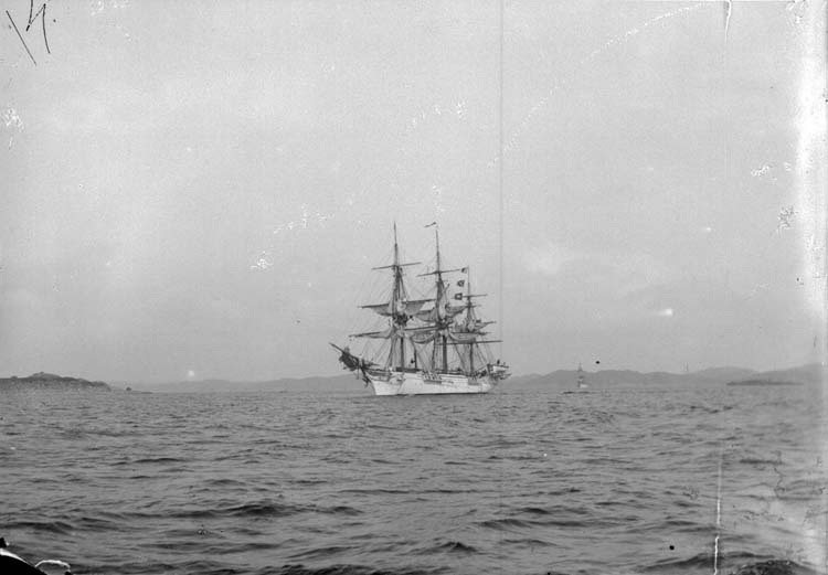 Enligt text som medföljde bilden: "Skeppet Najaden till segels Aug. 07 Lysekil."