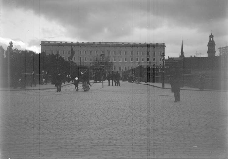 Enligt text som medföljde bilden: "Stockholm, kungl. Slottet fr. Norrbro 2/9 1900".