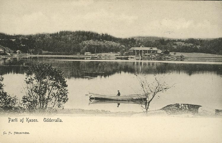 Tryckt text på vykortets framsida: "Parti af Kasen Uddevalla."