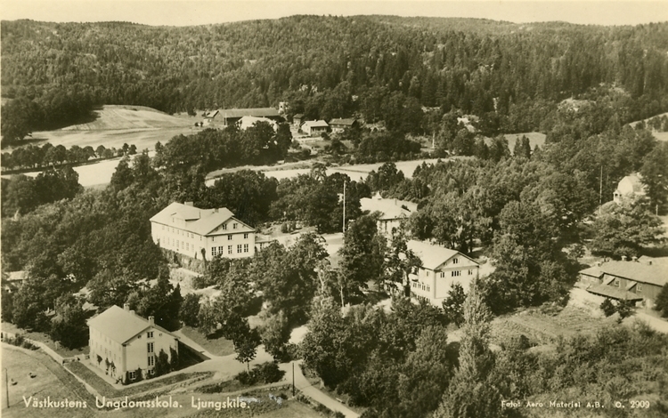 Enligt Bengt Lundins noteringar: "Flygfoto. Västkustens Ungdomsskola, Ljungskile".