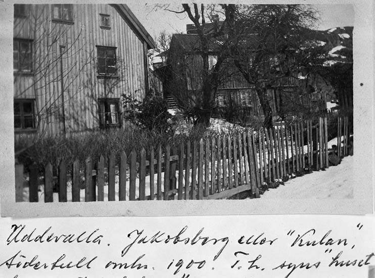 Text på kortet: "Uddevalla. Jakobsberg eller "Kulan", Södertull omkr. 1900. T.h. syns huset bakom Jakobsberg".