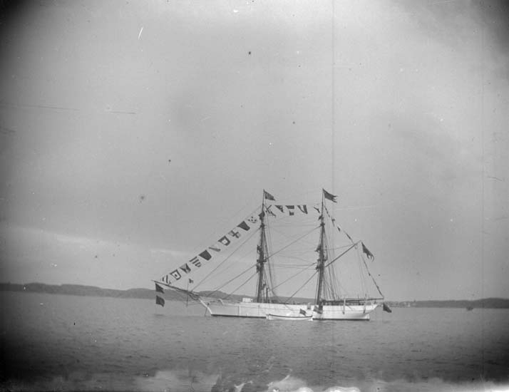 "Lysekil. Skeppsgossebriggen "Gladan" stor parad 25 juni 189."
