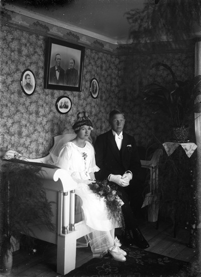 Brudpar fotograferat i hemmiljö