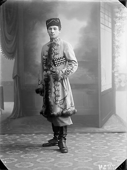 Enligt senare noteringar: "Ateljéfoto av skådespelare i rolldräkt, operett."
