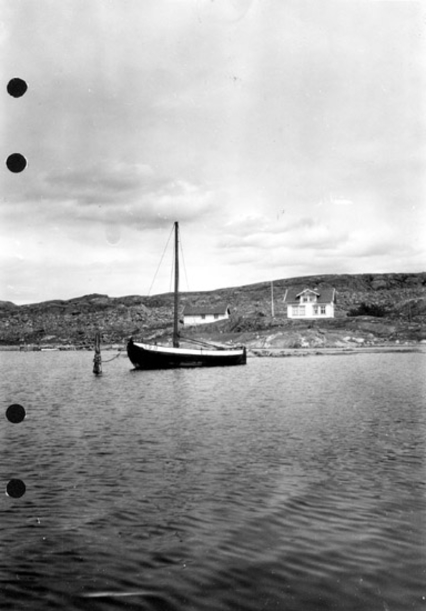 Skrivet på baksidan: Påbyggd drabåt med skansklänning. Hamnsundet, Koster