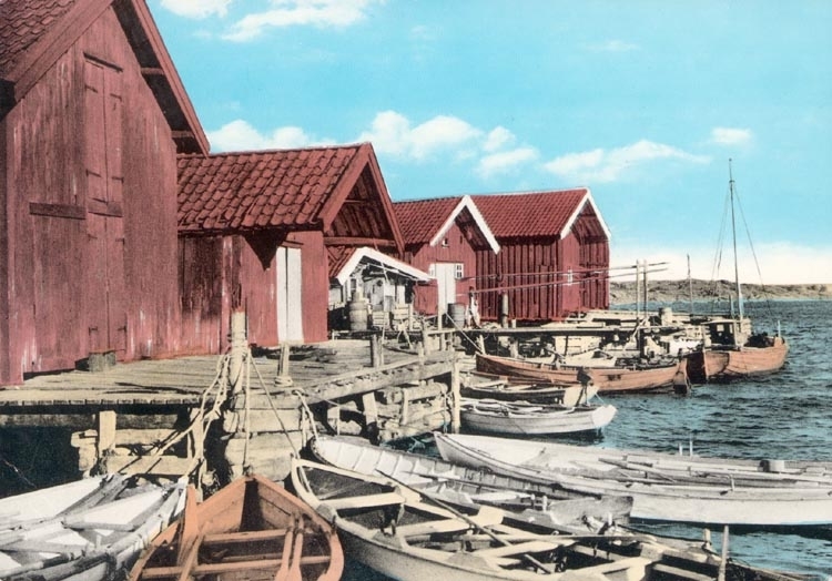 Tryckt text på kortet: "Käringön. Sjöbodar".
