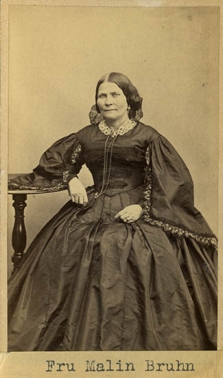 Text på kortets baksida: "Fru Malin Bruhn, f. Gyllich".