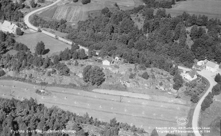 Enligt text på fotot: "Flygfoto över Boråsgården, Näsinge".