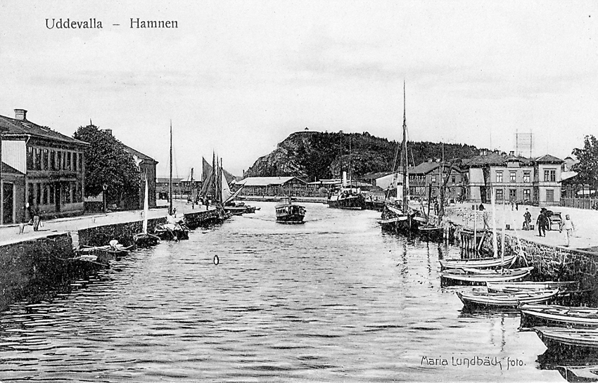 Tryckt text på kortets framsida: "Uddevalla - Hamnen".