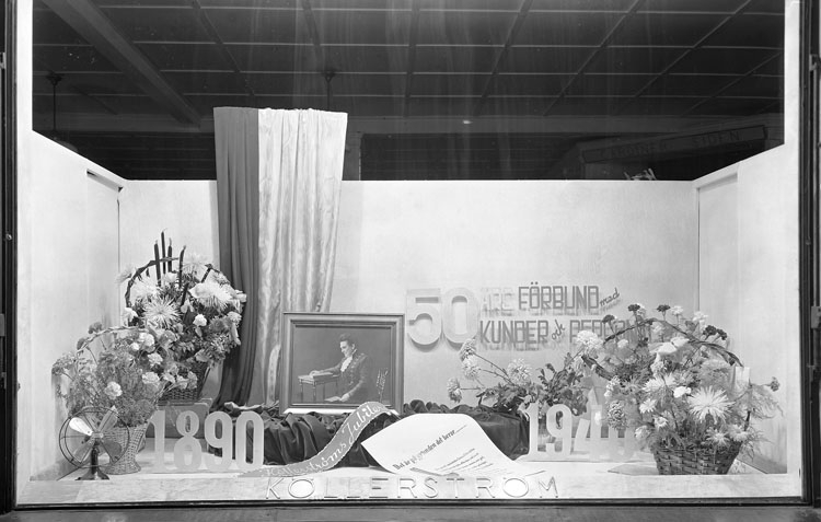 Uppgift enligt fotografen: "Uddevalla. Köllerströms skyltfönster. 50 års-jubileum."