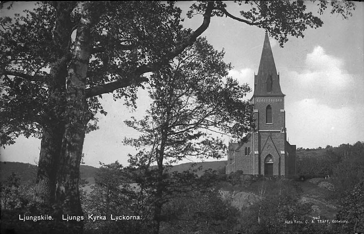 Enligt Bengt Lundins noteringar: "Lyckorna. Ljungs kyrka på klippor bakom träd. Vykort TF 540 BL 769".