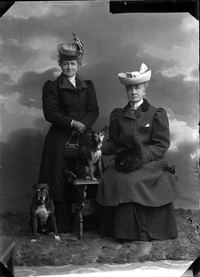 Enligt tidigare noteringar: "Uddevalla. Ateljefoto, Två damer med hundar."