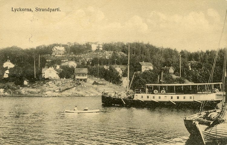 Enligt Bengt Lundins noteringar: "Lyckorna. Strandparti. SS Viken och roddbåt. Havsvik. Furudal".