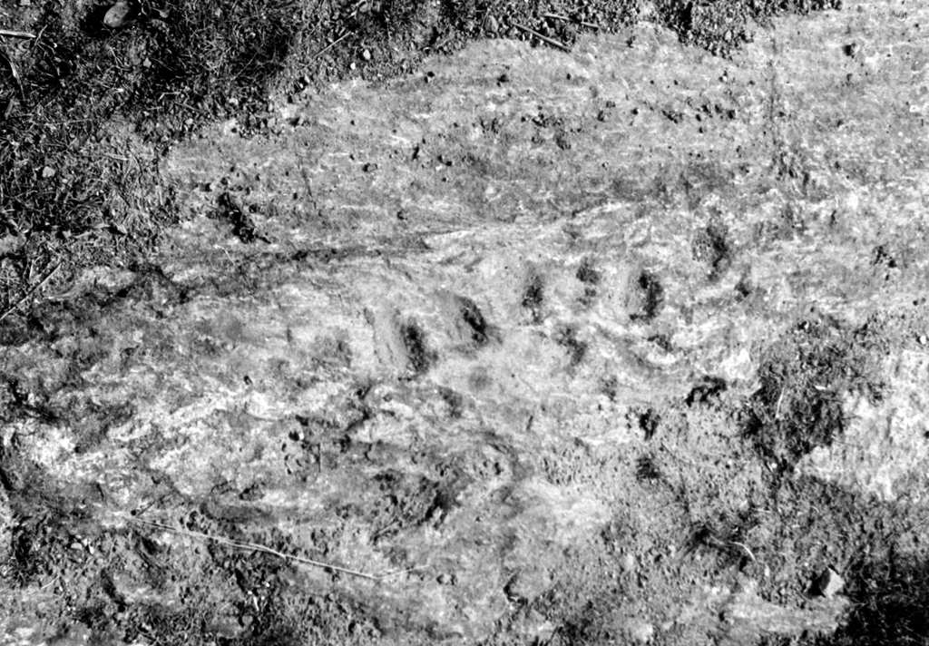 Enligt text: "Hällristning Bergskär Bärfendal Foto fr SV 3/8 1961 ÅF 404/61".