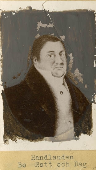 Text på kortets baksida: "Handlanden Bo Natt och Dag, d. 16 juli 1840 62 år 14 månader".