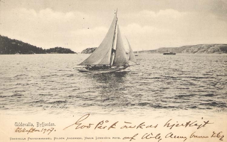 Tryckt text på kortet: "Uddevalla, Byfjorden."