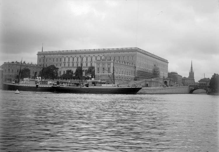 Enligt text som medföljde bilden: "Stockholm Kungliga Slottet fr. Skeppsbron 2/9 1900".