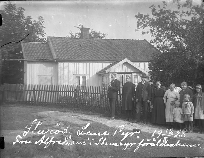 Skrivet på bilden: "Sturöd, Lane Ryr. 12/8 1928. Fru Alfredsson i Steneryr´s föräldrahem."