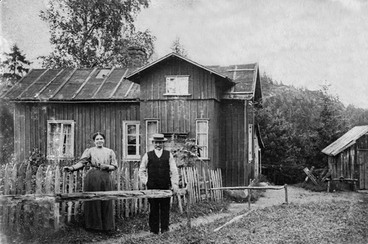 Enligt senare noteringar: "Repro av gammalt foto. Troligen föräldrarna till fabriksarbetaren Bernhard Karlsson." (BJ)