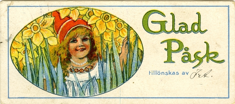 Notering på kortet: Glad Påsk tillönskas av J.A.