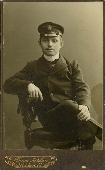 Text på kortets baksida: "Hattmakare Harald Stade, Uddevalla".