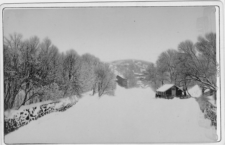 Enligt text skrivet på kopian: "Vinterparti fr. Träbron omkr.1880".