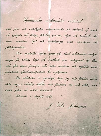 Uddevalla Mekaniska Verkstad, reklamskrivelse.