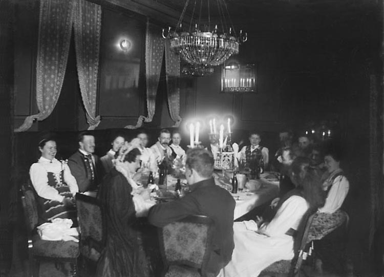 Enligt fotografens noteringar: "Folkdansare under supeen."
