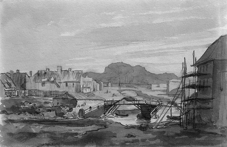 Enligt tidigare notering: "Avfotografering av tavla av J. Th. James 1814. Utsikt från Hasselbacken nedåt Bäveån."