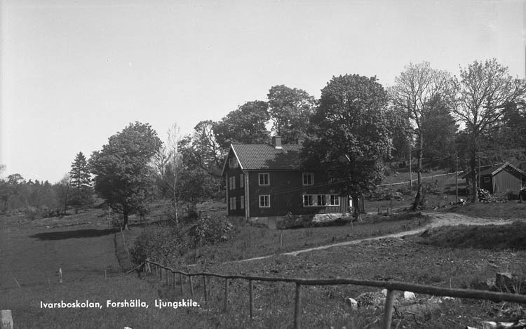Enligt Bengt Lundins noteringar: "Ivarsbo. Ivarsboskolan utan moln. Vykort KGH BL 1652".